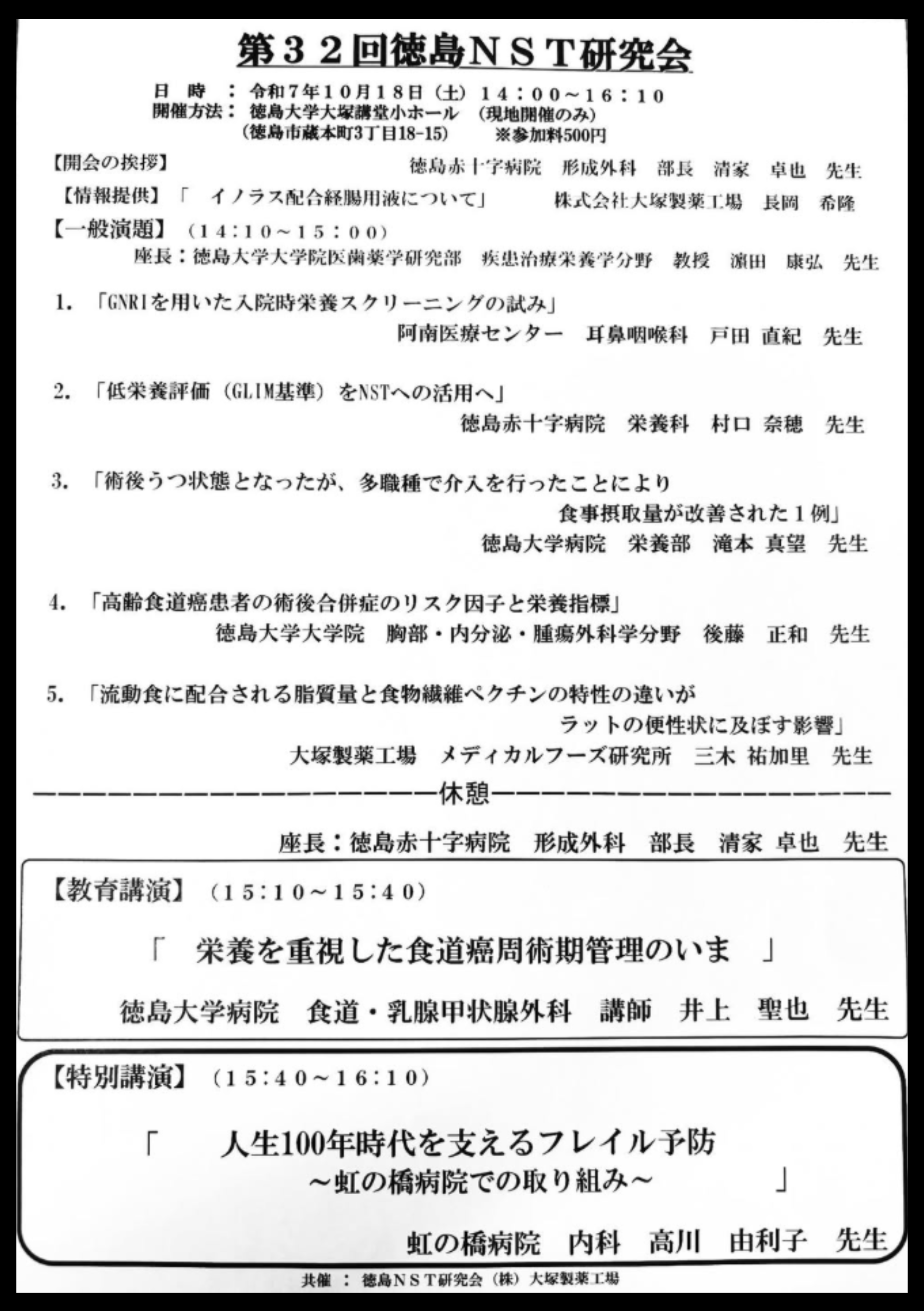 令和7年10月18日開催された第32回徳島NST研究会に医師・高川由利子が特別講演として参加いたしました。
