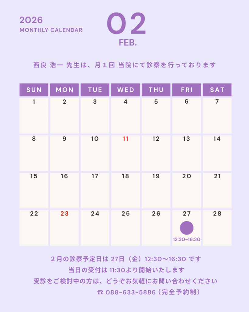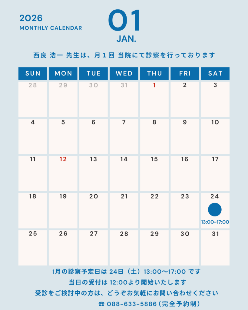 【 腰痛ドック】2026年1・2月診察日のお知らせ